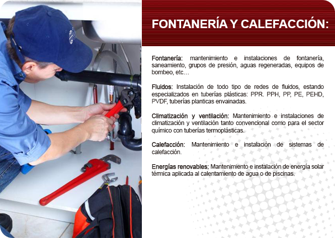 Instalación de todo tipo de sanitarios, conexiones para aguas residuales y pluviales. A su vez calefacción y montaje de climatización, de radiadores y aires acondicionados