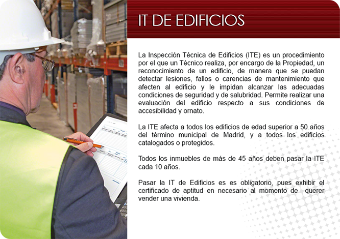 Realización de inspección a edificios para detectar fallos en estructura o realizar reconocimientos que aseguren un buenas condiciones tanto en accesibilidad como en ornato.